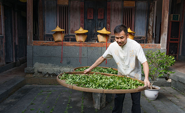 安溪铁观音采摘一芽三叶,从采摘到加工结束都是连枝带叶的。